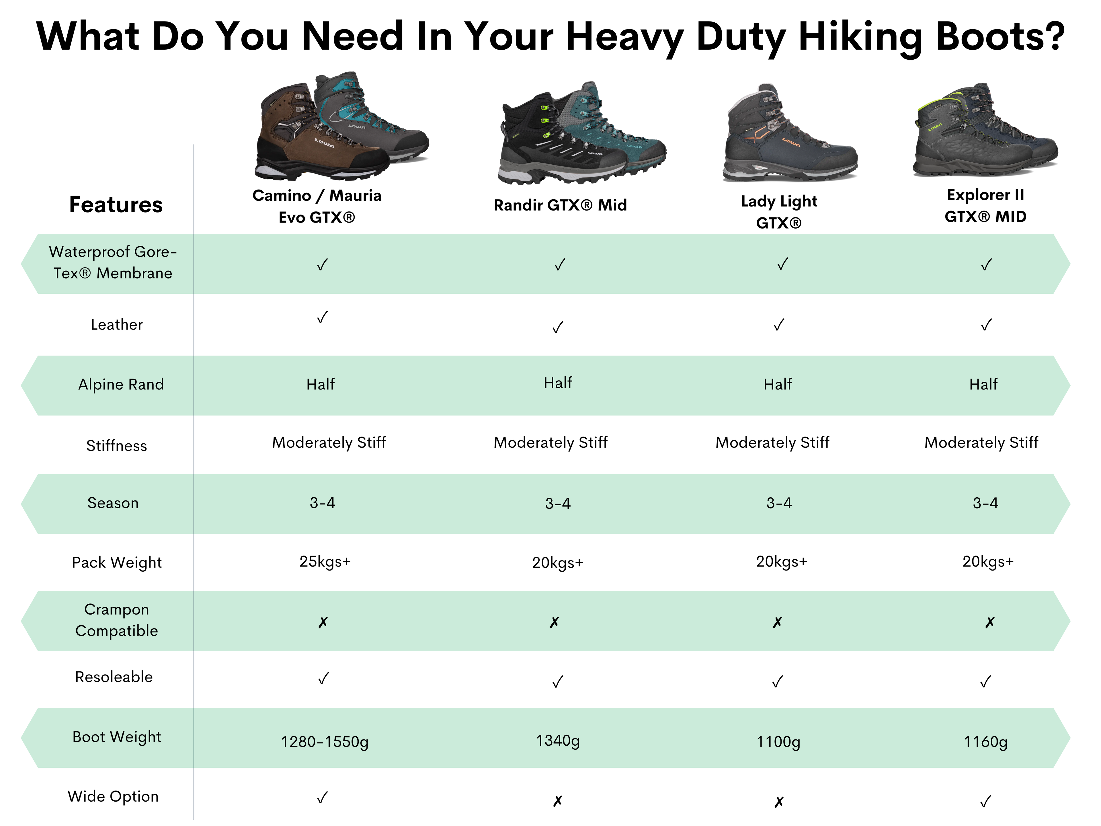 Designed for comfort and protection while carrying heavy loads over uneven terrain during multiple-day hikes in any weather conditions. Crampon compatible.