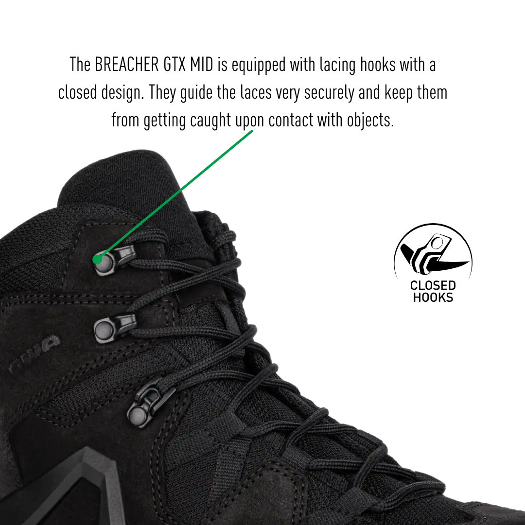 Lacing hooks with a closed design guide the laces through the boot securely and prevents them from getting caught on objects upon contact.