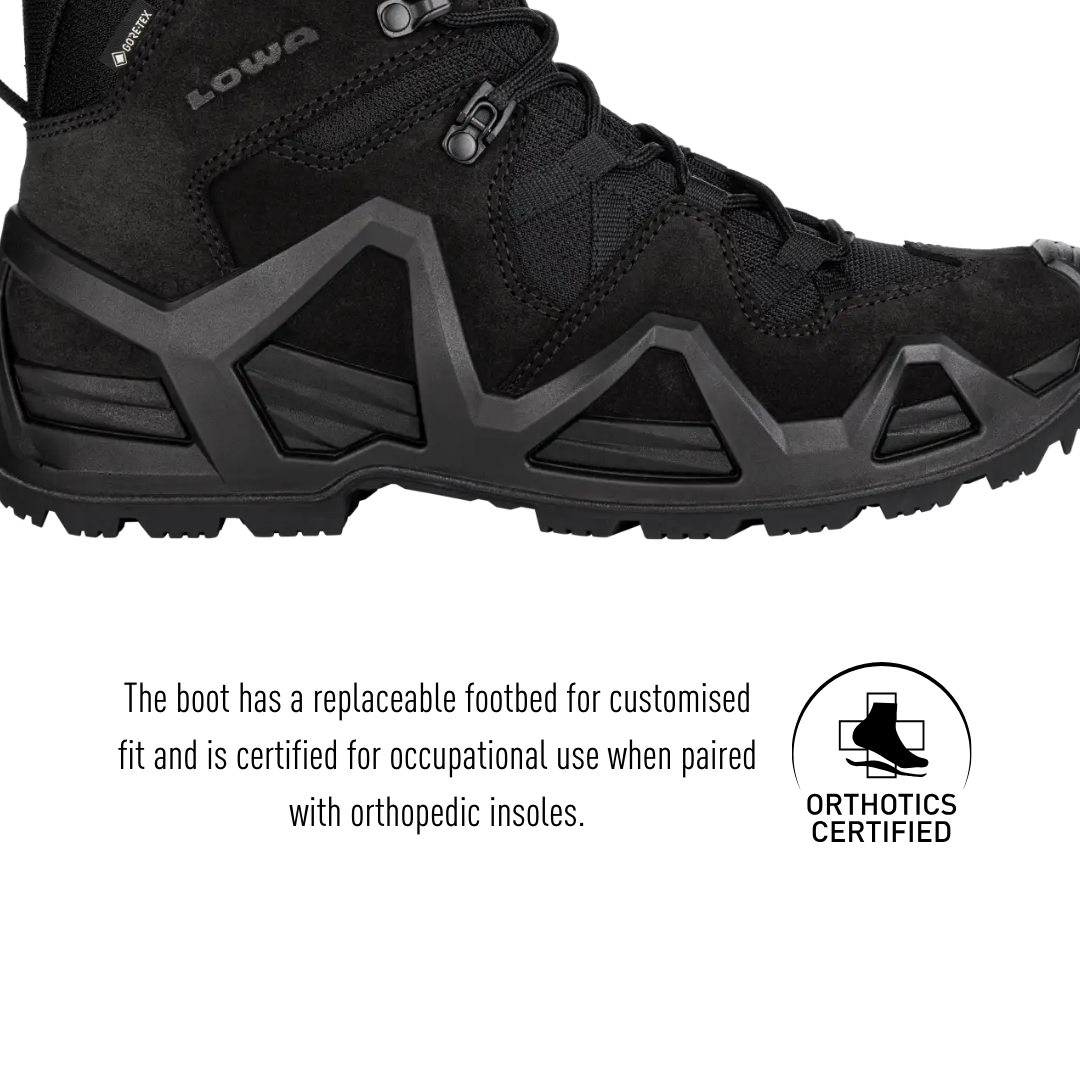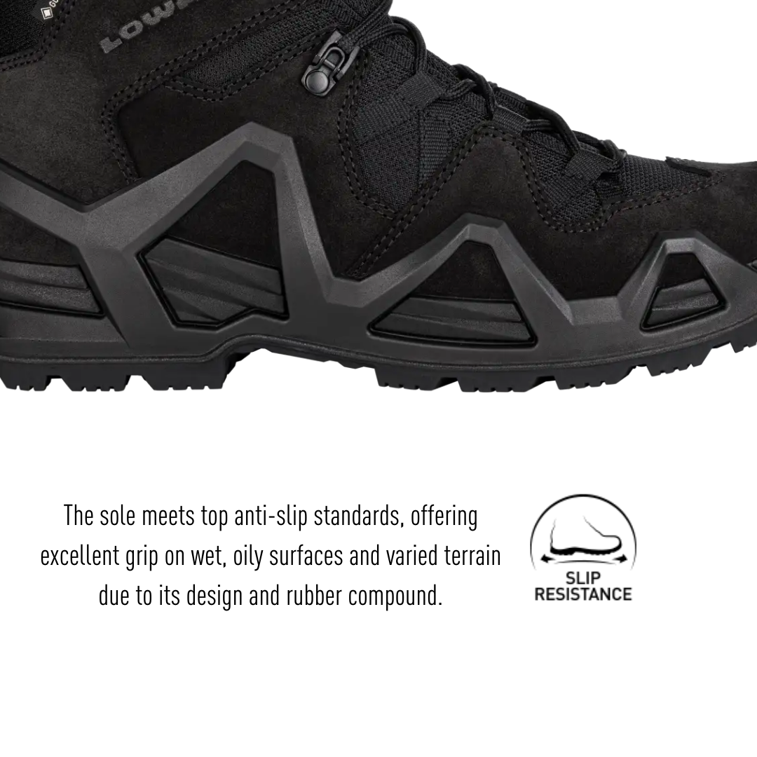The ZEPHYR MK2 GTX MID Ws is certified as occupational footwear in accordance with EN ISO 20347:2012. It is anti-static and has a cold and heat-insulating sole complex. The outsole is not only anti-slip; it is also resistant to oil, petrol, and contact heat.