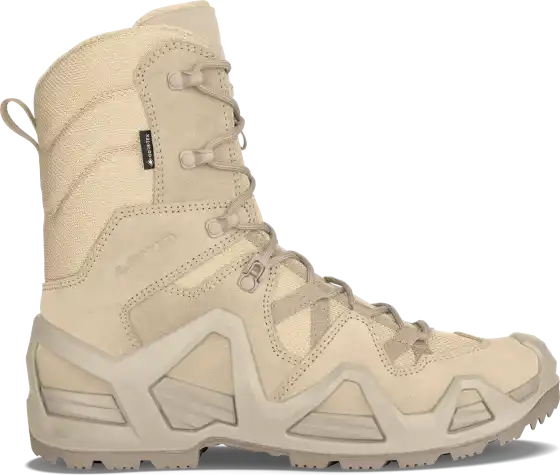 The ZEPHYR MK2 GTX HI boot is designed to be agile, lightweight, and stable for missions. It has a high-cut upper for support during parachute jumps and fast roping. The upper is made from tough materials, including water-repellent suede and breathable CORDURA®. You can adjust the lacing with a special hook. It's waterproof and great for wet conditions, thanks to GORE-TEX. The dual-layer PU midsole with a MONOWRAP® frame surrounds and supports the foot like an exoskeleton.
